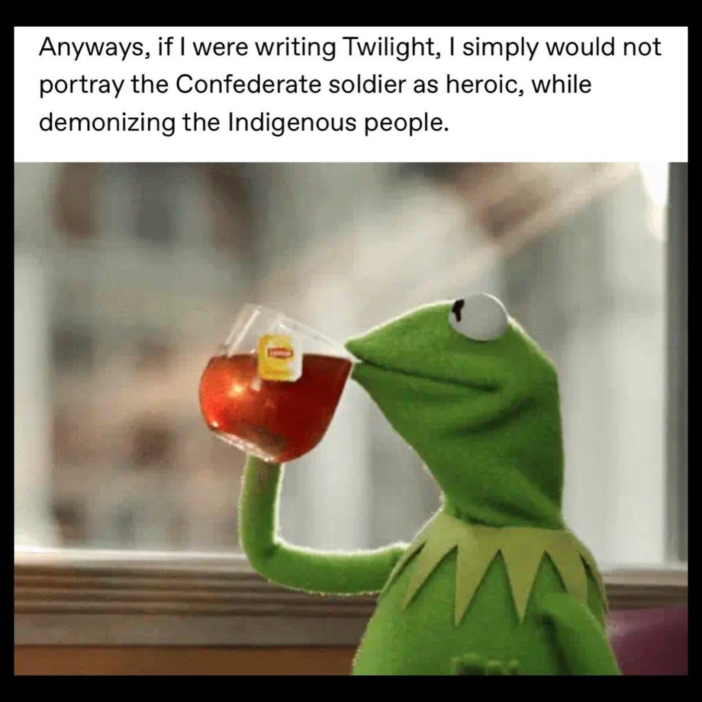 I contemplated what the books meant to me as a junior in high school, when I first read them, and how I’d feel if I’d read a statement like Cox’s back then. And I realized it probably would’ve been more damaging to my self-esteem, and general understanding of my own demographic, than any message I could’ve derived from Twilight.