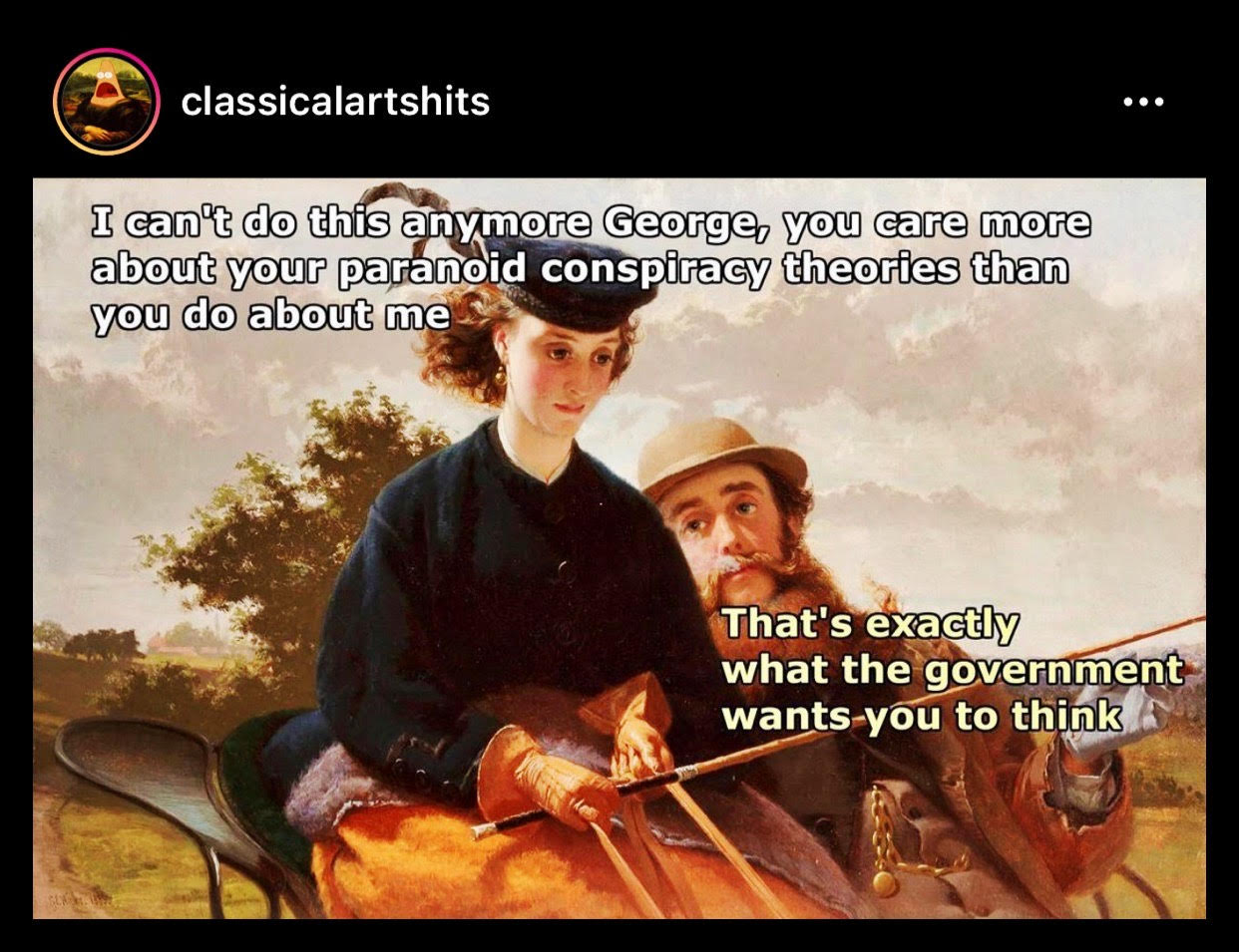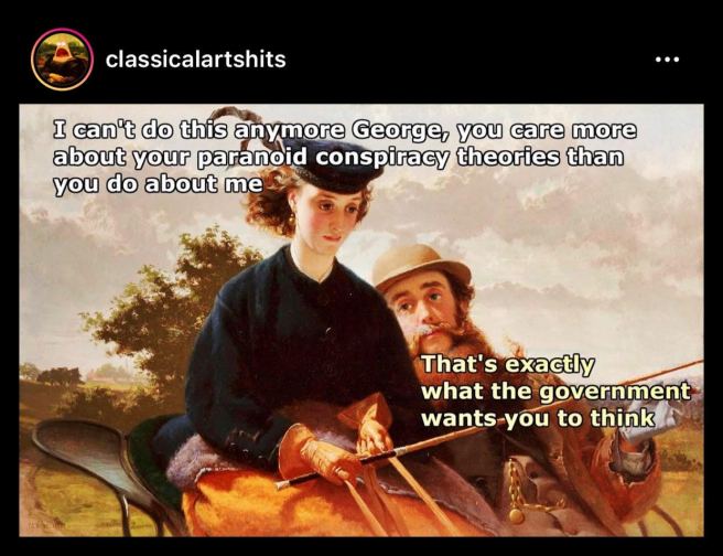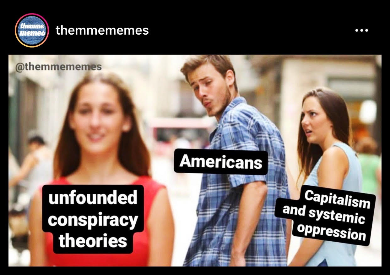 Despite our best efforts to resist facing the tiny blip that is our lives, as terror management theory poses, human beings are hardwired to look for truth—some greater meaning, beyond the bottom line—and Americans are no exception. The problem, however, is that the only time we collectively look for that greater meaning is in times of chaos and crisis—a time when, in my opinion, it is least productive to do so, as the greater meaning is so often dictated by panic; because it is so often described in apocalyptic, sensational, and out of touch, terminology. In short: It’s all a conspiracy! (It seems to me that the reason Americans are particularly vulnerable to unfounded conspiracy theories at this moment in time is because the truth that has been laid bare, over and over again, throughout the course of history, is even scarier than the made-up stories we tell ourselves. Like: it’s easier to believe that child sexual abuse is perpetrated by some elite society of democrats who worship Satan than it is to accept that sexual abuse is often inflicted by friends, family, religious leaders, and teachers; it’s easier to believe that the holocaust was made up, or exaggerated, than it is to accept that it did happen, and it really was that bad; it’s easier to believe that George Floyd, or Breonna Taylor, did something to deserve being murdered than it is to accept that the police can just suffocate a person on the concrete in broad daylight, or shoot someone in their sleep, for no real reason at all; it’s easier to believe that sexual assault victims are just working together to “take down a good man” for clout and profit than it is to accept that we’ve all known and loved at least one man who has traumatized a person in these ways.)